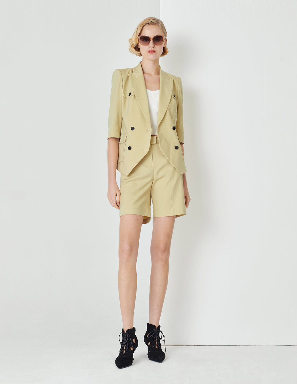 MARYLING's shorts feature a clean, tailored trouser shape with a mid-thigh length that aligns perfectly with contemporary fashion trends.