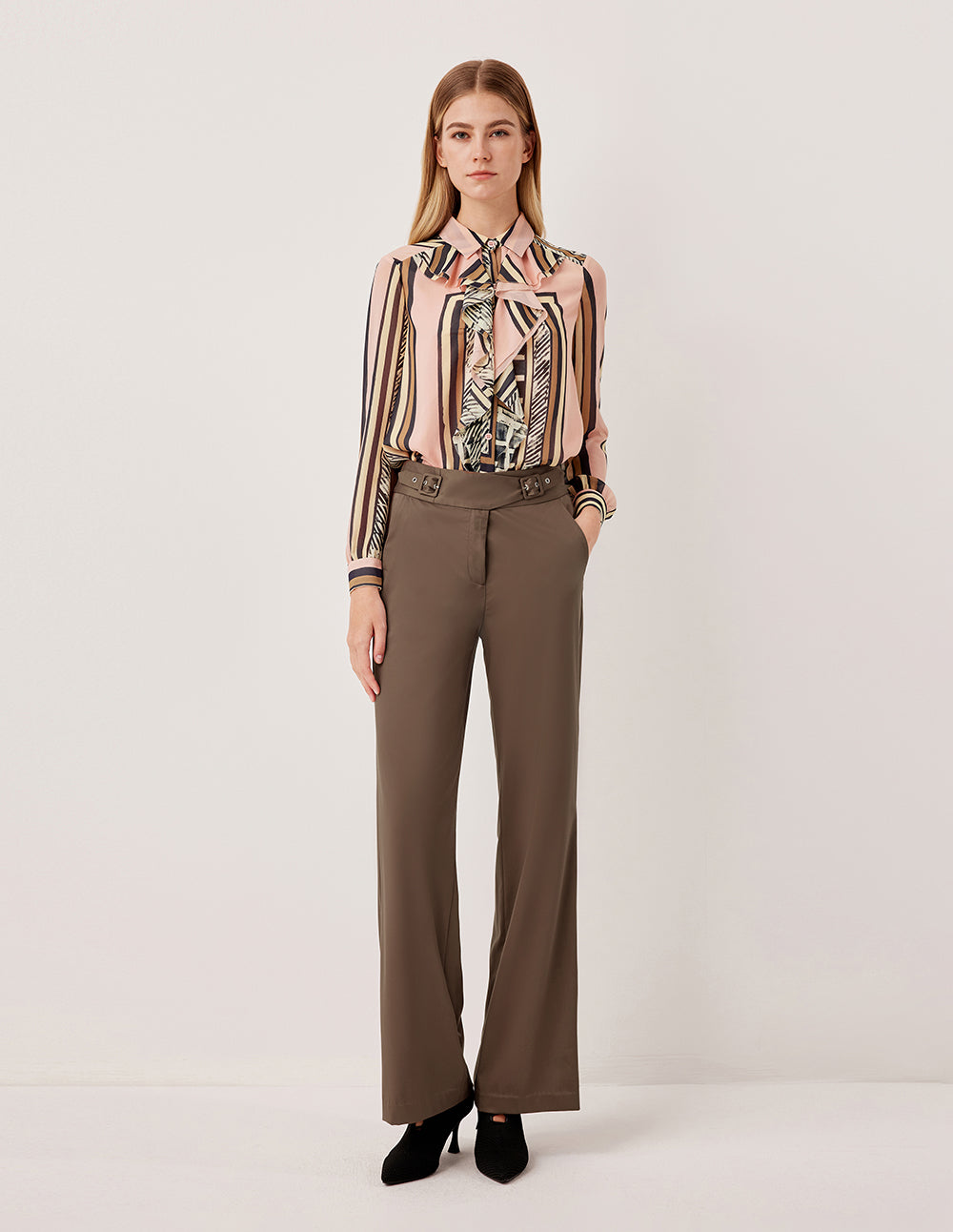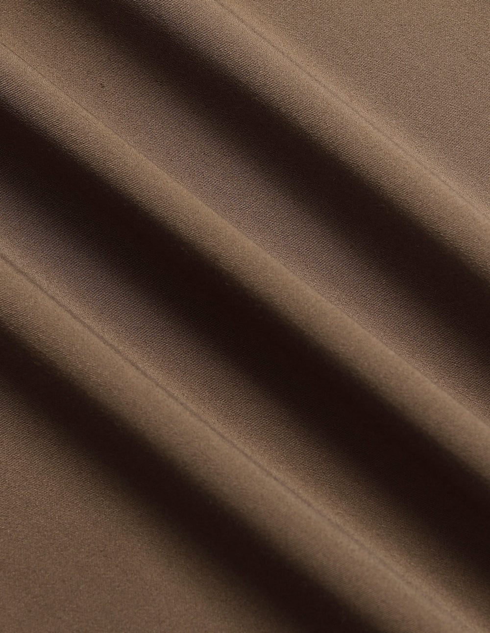 Crafted from a viscose-blend fabric, this piece offers excellent breathability, a crisp hand-feel, and durable wearability. It resists deformation even with long-term use, consistently maintaining a neat and elegant drape. At the same time, its moderate stretch ensures freedom of movement through the waist and thighs, providing a comfortable, unrestricted feel whether sitting or walking for extended periods.