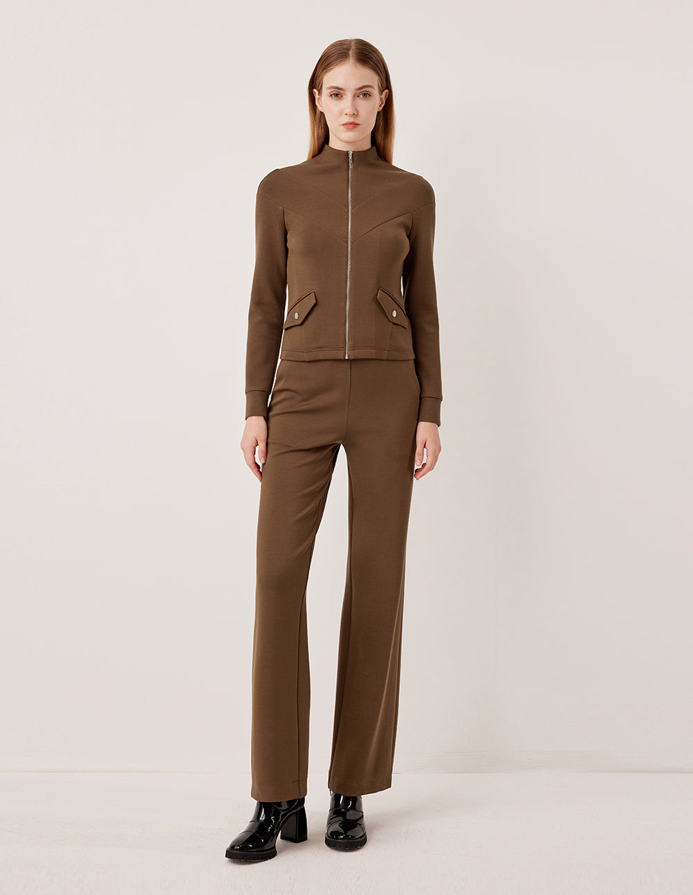 Inspired by the autumnal hues of Cambridge, these high‑waisted, straight‑leg wide‑leg trousers are infused with a deep brown tone. The minimalist design avoids unnecessary ornament—the high‑rise cut elegantly lifts the waistline, while the straight, flowing leg visually elongates the figure. The drapey fabric moves smoothly with every step. They can be paired with the matching jacket from the same collection for a tailored suit look, or with a sweater for a relaxed style, creating an understated, elegant foundation for everyday wear.