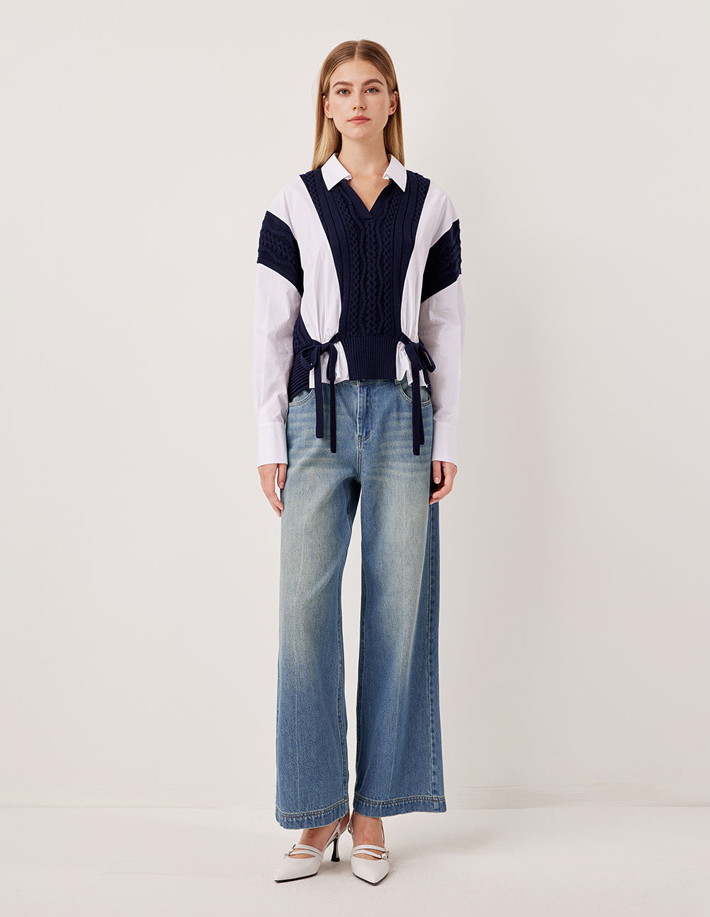 This design masterfully blends retro aesthetics with modern comfort. A high‑rise waist elevates the natural waistline and re‑proportions the silhouette, while a relaxed straight‑leg fit flatters a range of leg shapes. Crafted with detailed stitching and natural light‑wash treatment at the thighs, it delivers a vintage look with a distinct sense of character.