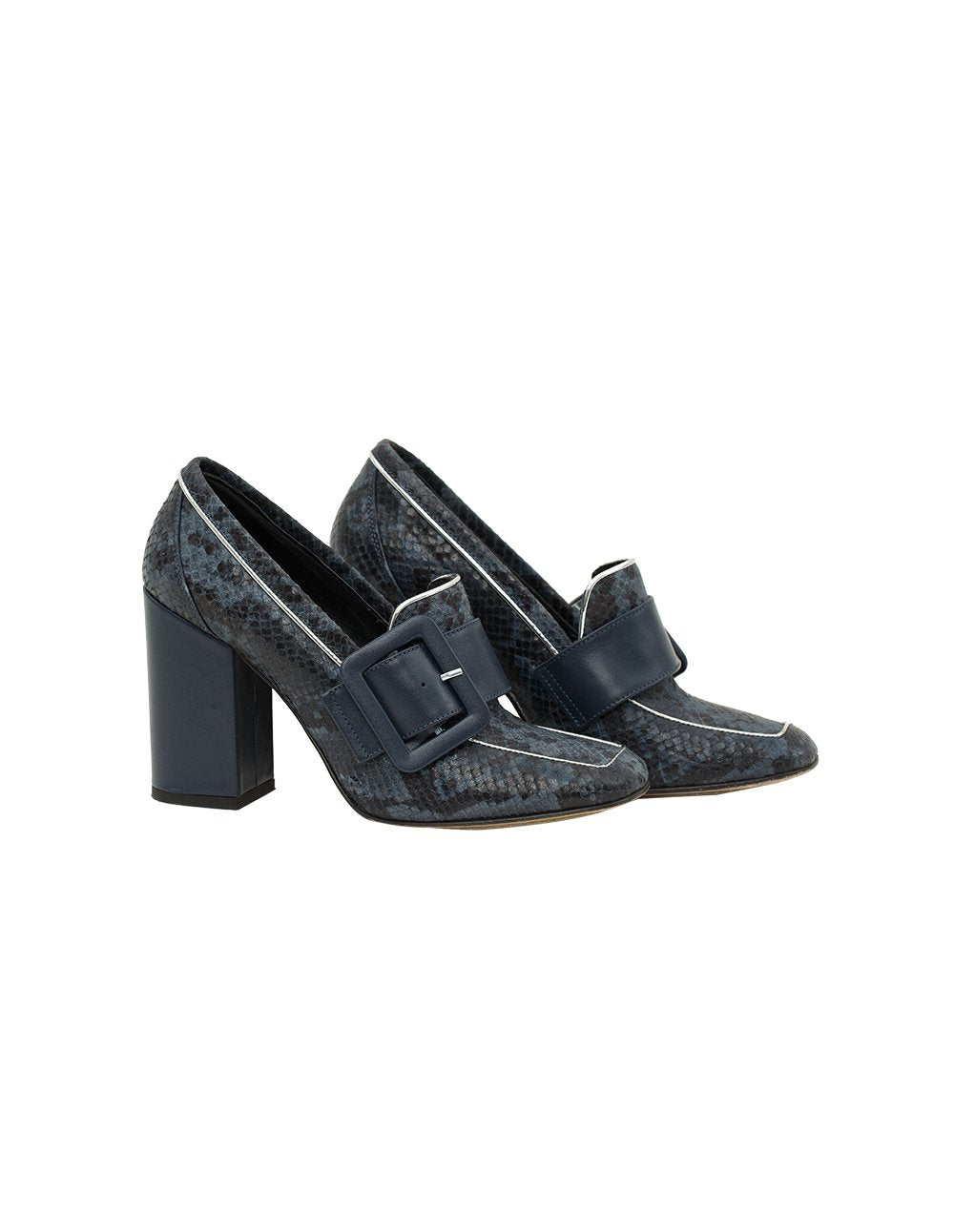 MARYLING Snake Print Leather Buckle High Heel Loafers