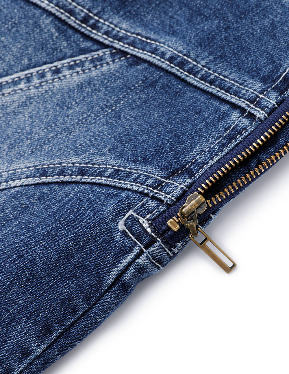 MARYLING's denim skirt features a clever criss‑cross seam structure, a sleek fishtail silhouette, and a subtle slit design that adds a feminine touch. Rendered in a classic blue‑wash denim, the look feels both timeless and refreshingly modern.
