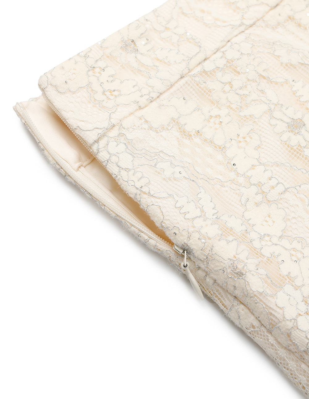 Cut with three‑dimensional precision, this A‑line skirt flows naturally like a petal. Intricate lace embroidery covers the surface, with delicate sequins scattered along each motif, catching subtle light with every step. A widened waistband sculpts the waistline with flattering ease. Pair it with a sweater for soft daytime elegance, or style with the matching top for an instantly captivating evening look—every movement becomes a showcase of haute couture refinement.