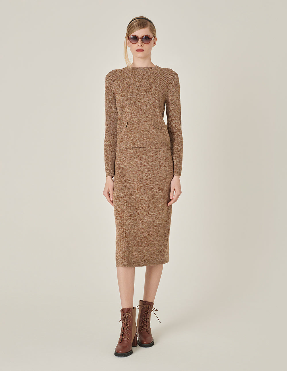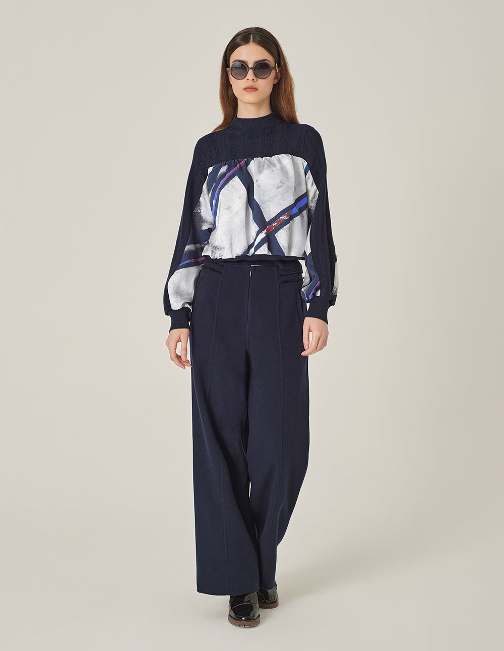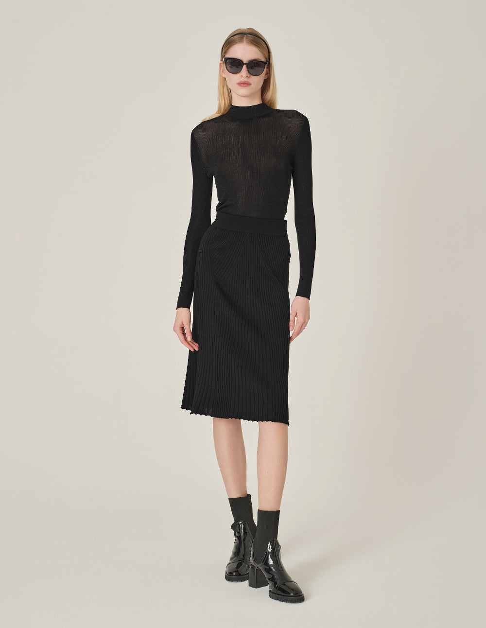 MARYLING Stand-Collar Long-Sleeve Knitted Top