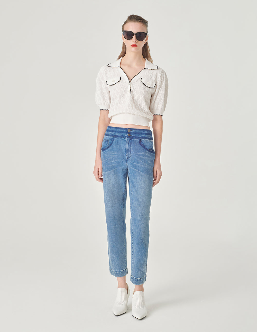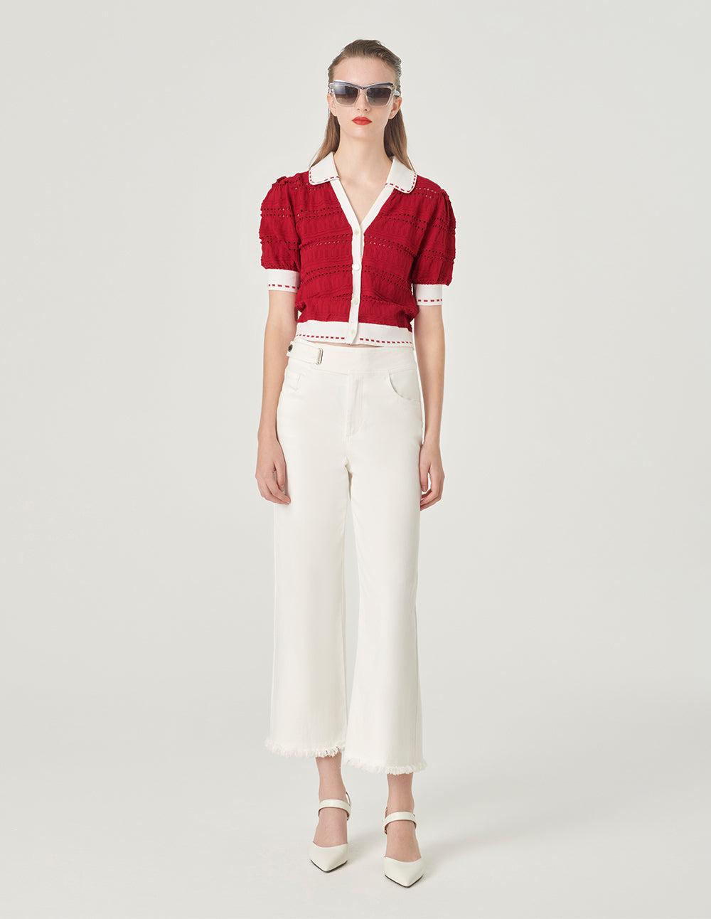 MARYLING Peter Pan Collar White Trim Short-Sleeved Knitted Pullover