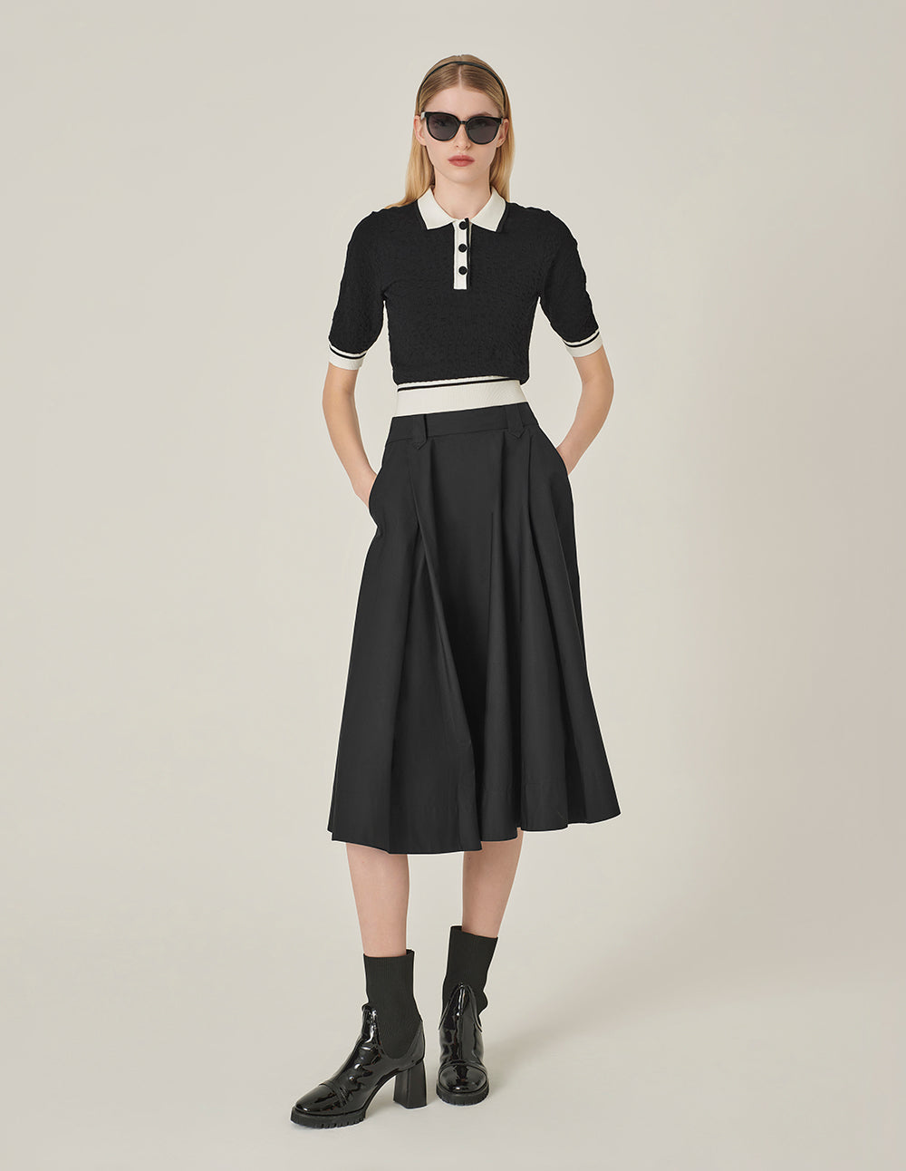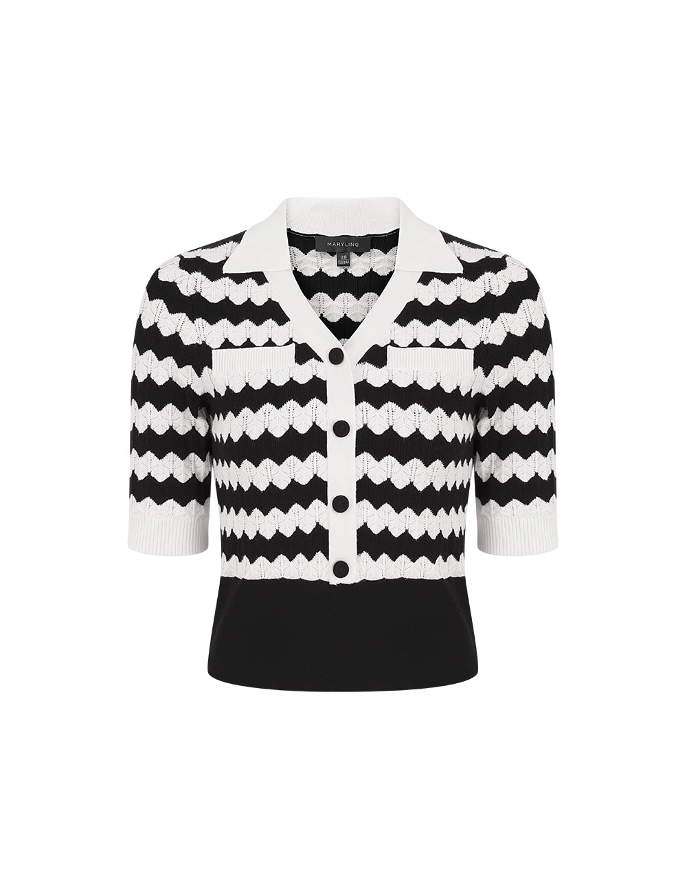 MARYLING Black And White Contrasting Short-Sleeved Polo Collar Knitted Pullover