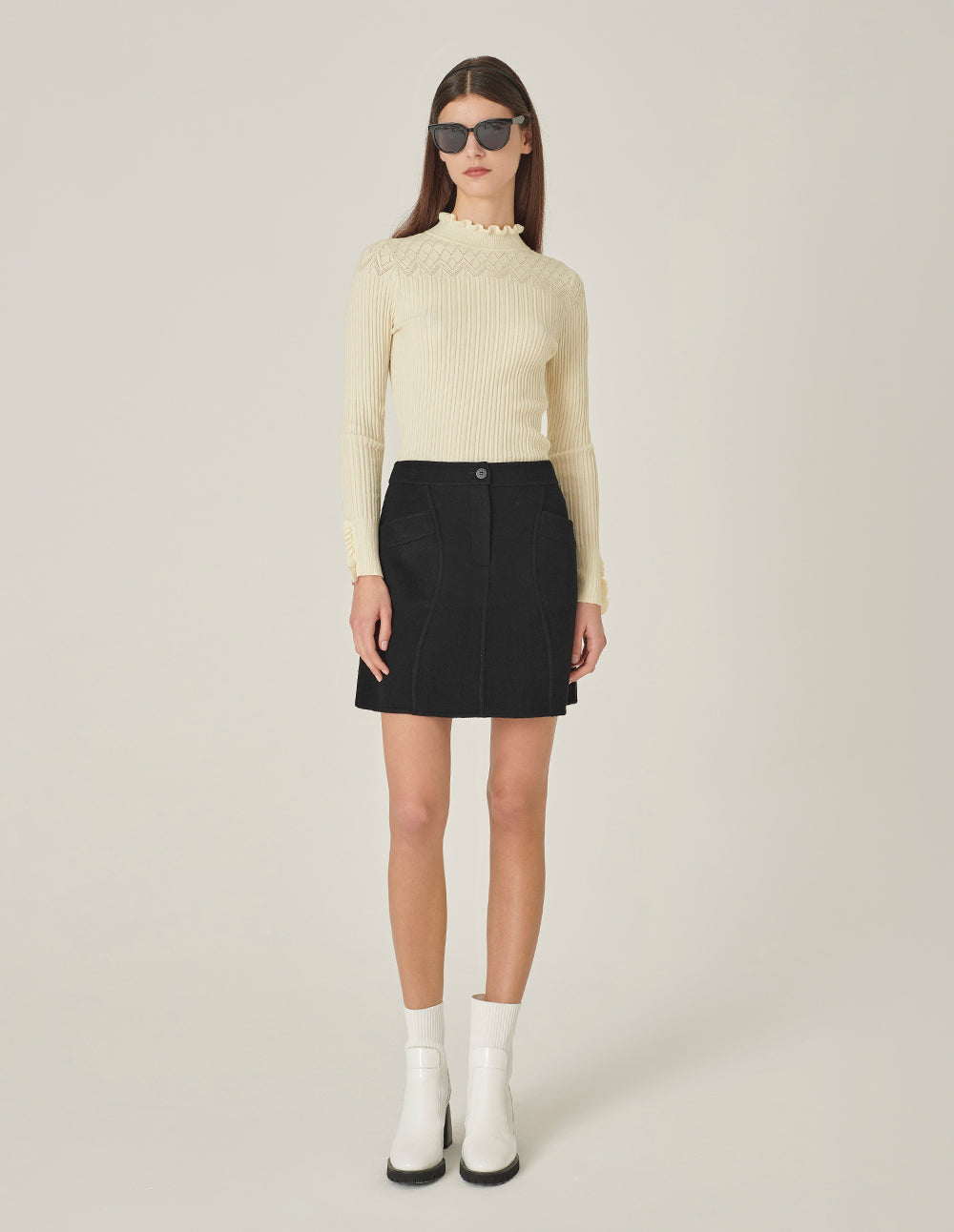 MARYLING Cream Ruffle-Turtleneck Knitted Sweater