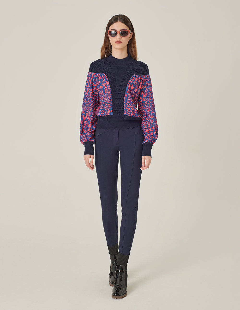 MARYLING Colourblock Lace-Up Knitted Sweater