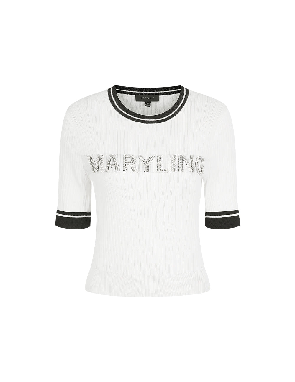 MARYLING Contrast Logo Crew Neck Knitted Sweater
