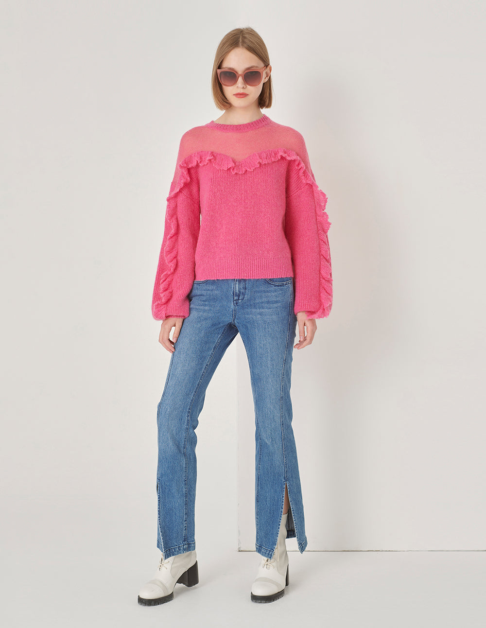 MARYLING Crew-Neck Hollow Long-Sleeve Mohair Knitted Pullover