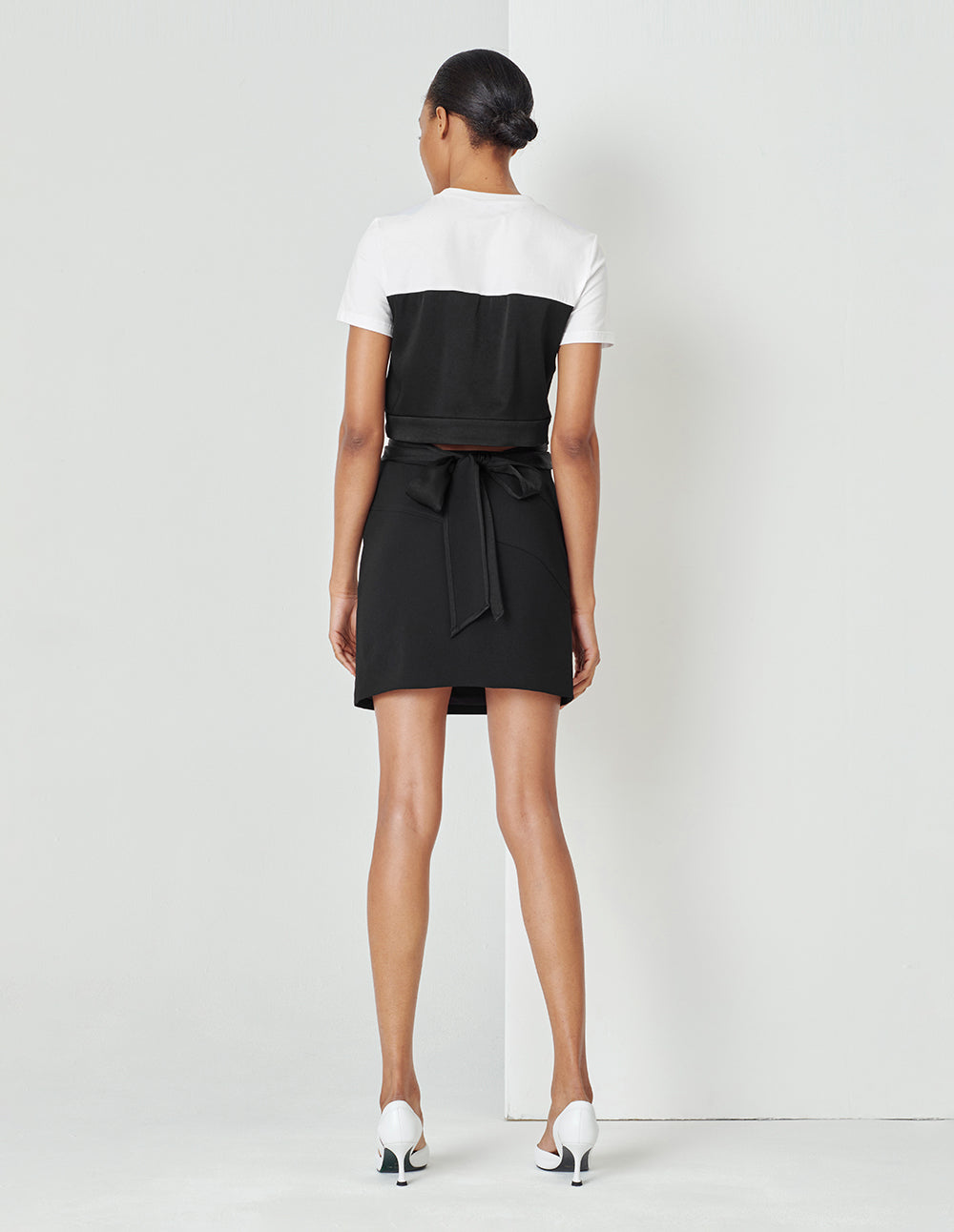 MARYLING Black And White Contrast Crossover Detail Panel Crewneck T-Shirt Top