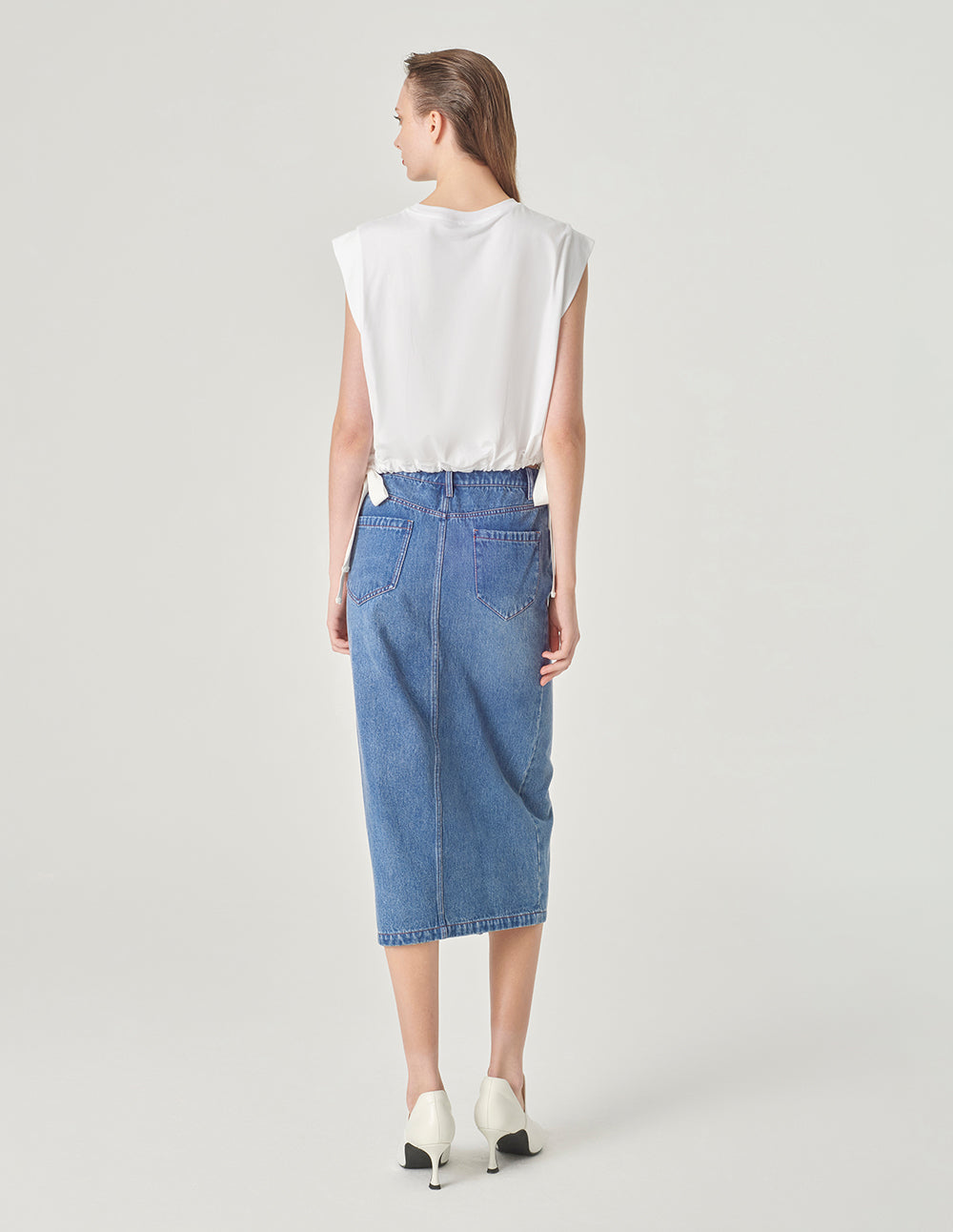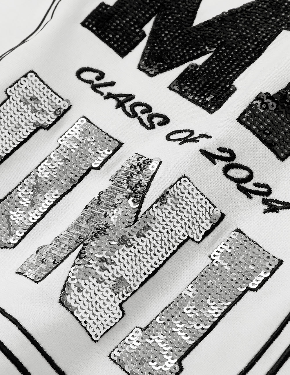 The standout feature of this MARYLING T-shirt is its sequin‑embroidered LOGO, artfully arranged in black and silver letters to create a captivating visual motif. Drawstrings on both sides add a detailed, youthful edge that enhances the modern, fashion‑forward aesthetic.