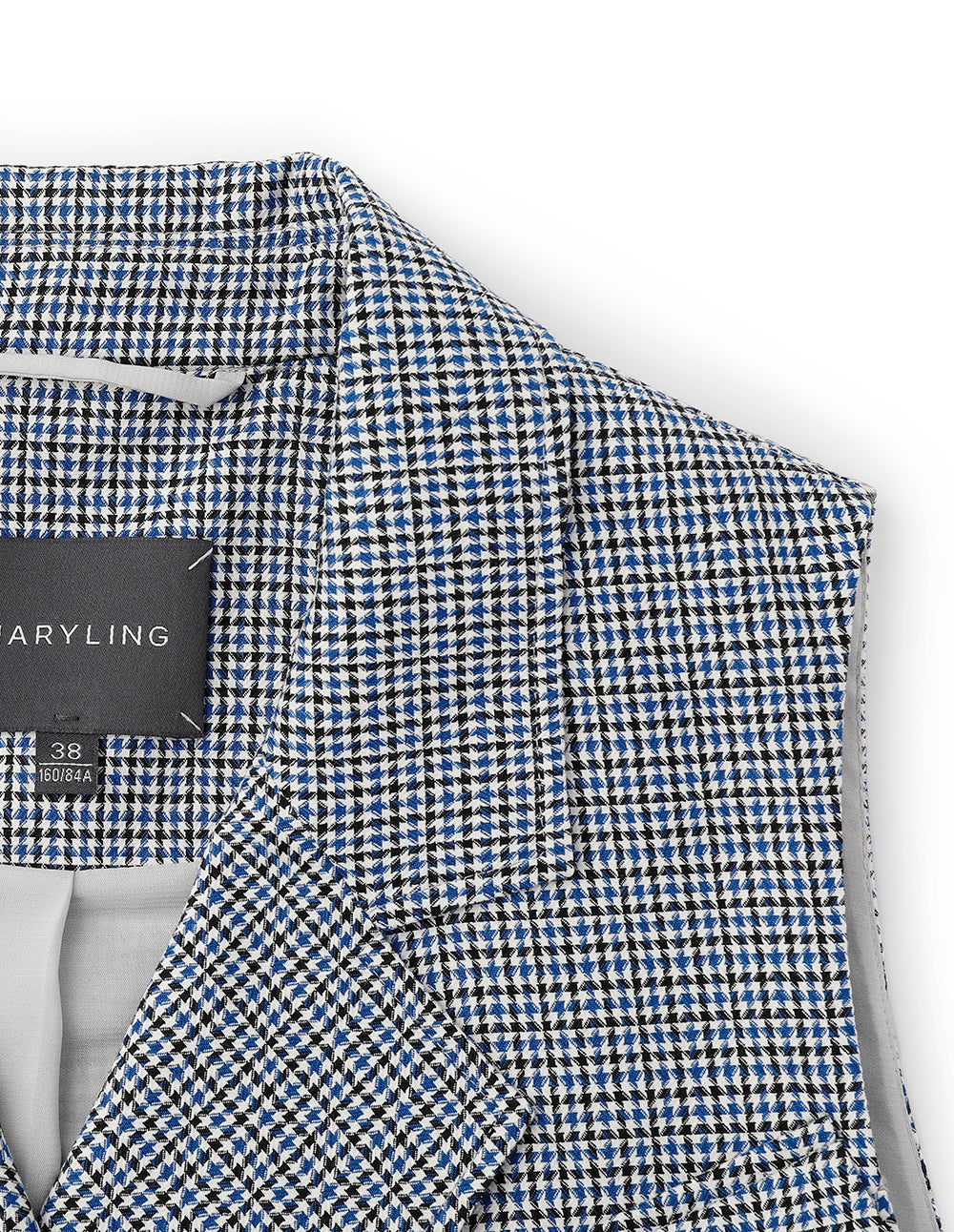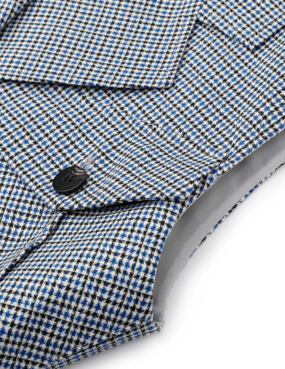 MARYLING Blue And White Small Check Houndstooth Waist Tie Detail Cropped Vest