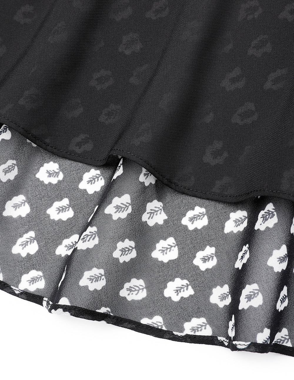MARYLING Black And White Forest V-Neck Pinched Puff Sleeve Dress
